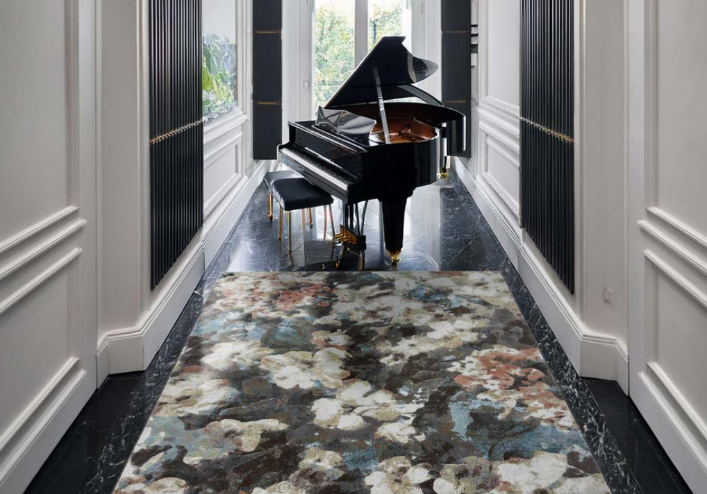 La colección Kira despliega una amplia variedad de patrones desde composiciones abstractas y efectos marmoleados hasta flores difuminadas y líneas orgánicas que evocan la estética de un lienzo moderno. En los interiores, estas alfombras funcionan como auténticas obras de arte textiles, capaces de transformar un ambiente neutro en un espacio lleno de personalidad y equilibrio visual.