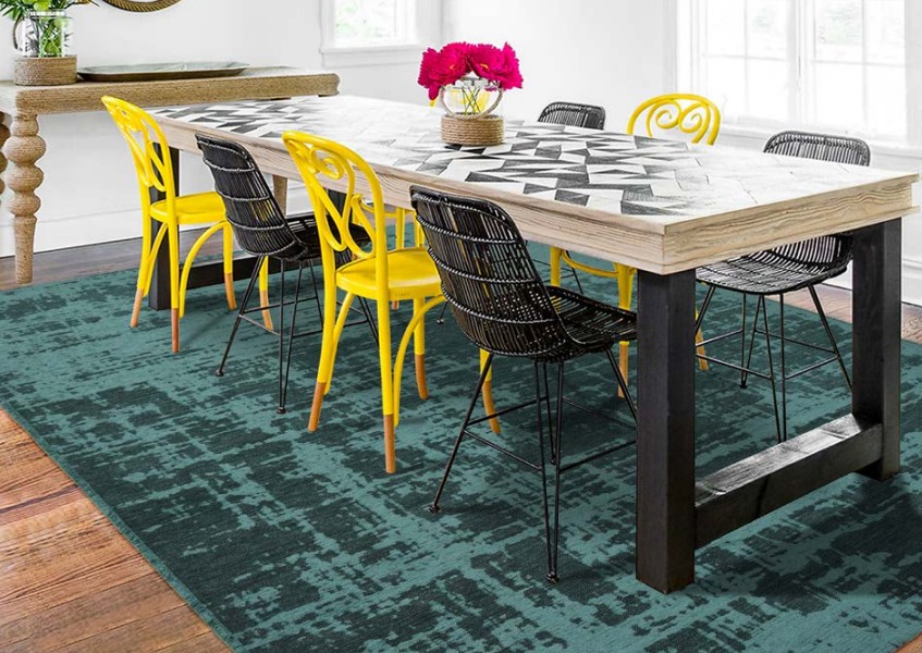 La alfombra Nassau de MA SALGUEIRO es mucho más que un complemento decorativo: es una pieza protagonista que aporta textura y color al ambiente. Su diseño moderno en tonos verdes profundos, con un efecto visual que simula un desgaste artístico, la convierte en una base perfecta para comedores con carácter, espacios creativos o salones que buscan un toque original y refinado.