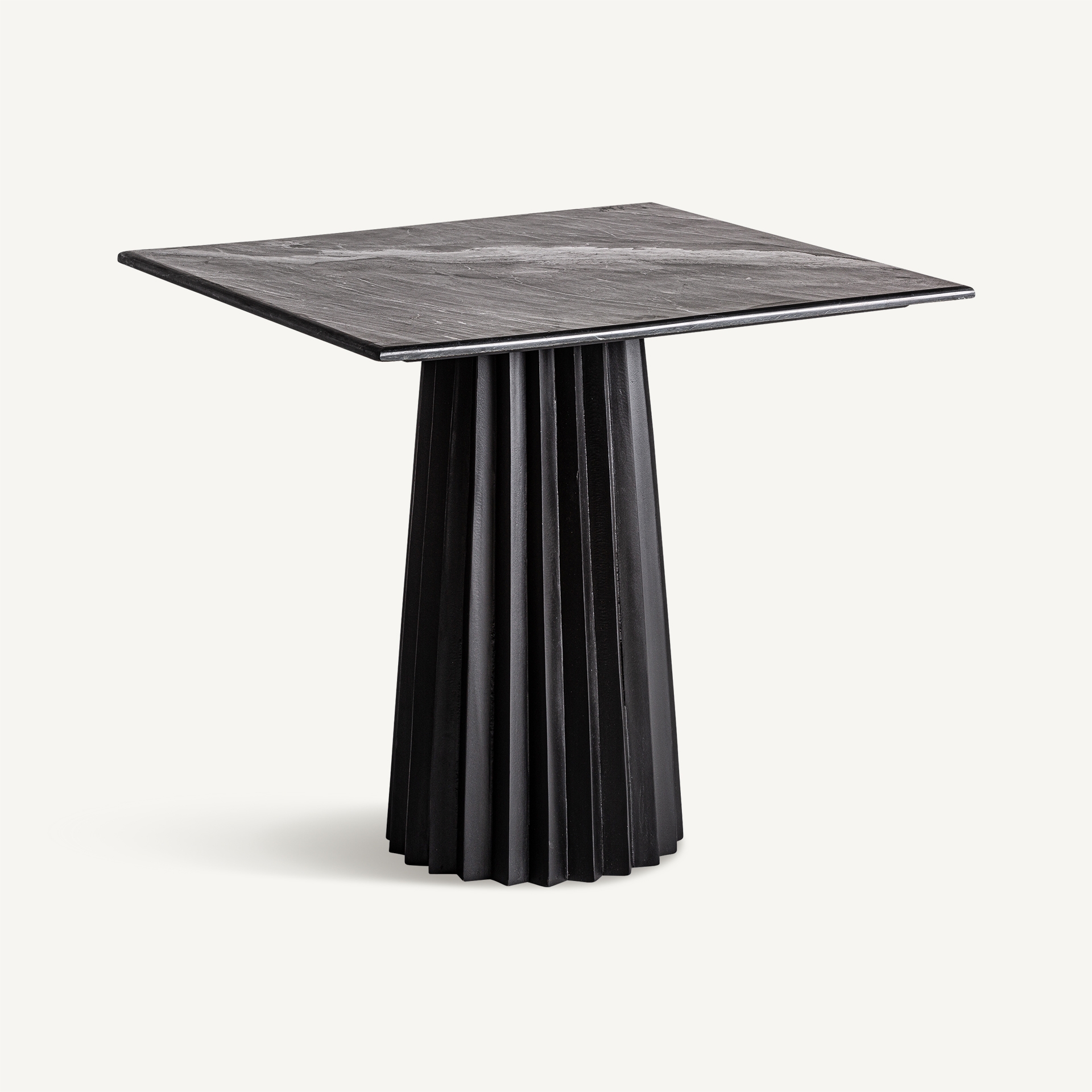Su base acanalada aporta movimiento visual y una sensación de profundidad que transforma por completo la percepción de la pieza. El diseño estriado no solo introduce un matiz arquitectónico y sofisticado, sino que además crea una imagen elegante y muy actual, perfecta para interiores que buscan muebles con personalidad.