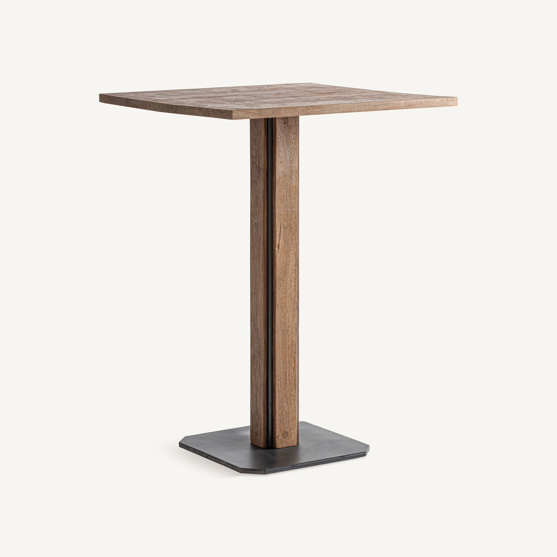 La Mesa Bar Rho es una pieza que expresa equilibrio entre materia y forma. Su estructura combina la nobleza de la madera de mango en tono marrón claro con una sólida base de hierro en color negro, logrando una estética honesta y atemporal.
