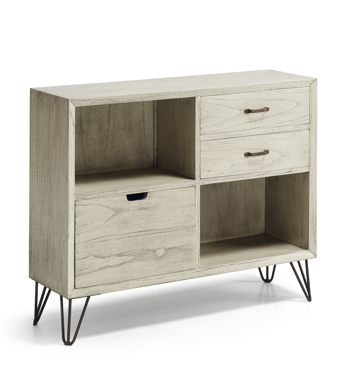Consola dos huecos y cajones de estilo vintage. Originales patas metálicas que consiguen una pieza con encanto.