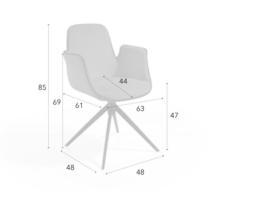 Está disponible en una única medida. Las dimensiones específicas de la Silla Beatle C son las siguientes: Ancho: 63 cm, Fondo: 61 cm y Alto: 85 cm. Para más información, por favor, contacte con nosotros.