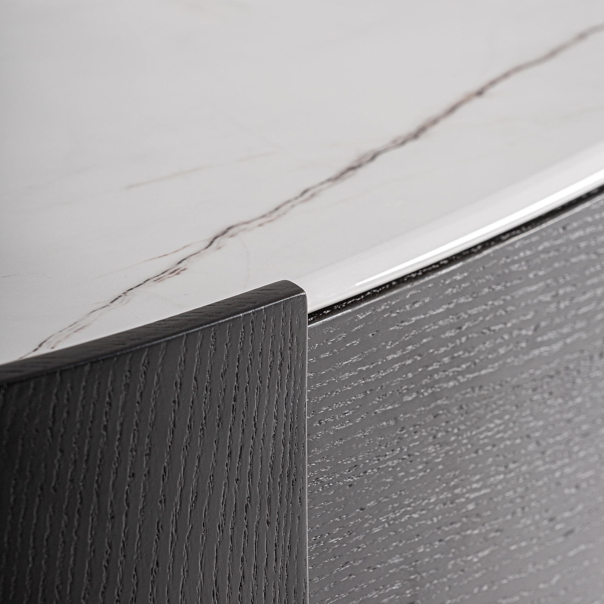 La estructura sin tiradores refuerza su carácter minimalista, permitiendo que la mirada se centre en la textura de la madera y en la forma envolvente que define su personalidad. Esta cómoda no solo destaca por su belleza decorativa, sino también por la capacidad que tiene de convertirse en un punto focal que aporta distinción y armonía al espacio.