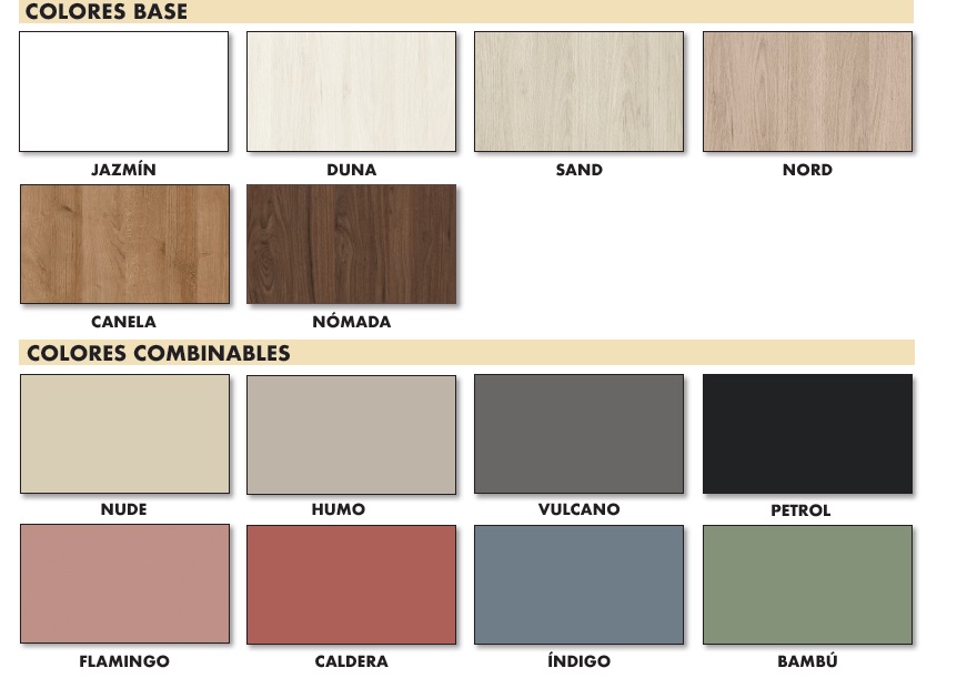Los acabados que se visualizan en la foto adjunta son DUNA/HUMO/VULCANO. Tirador DOT
