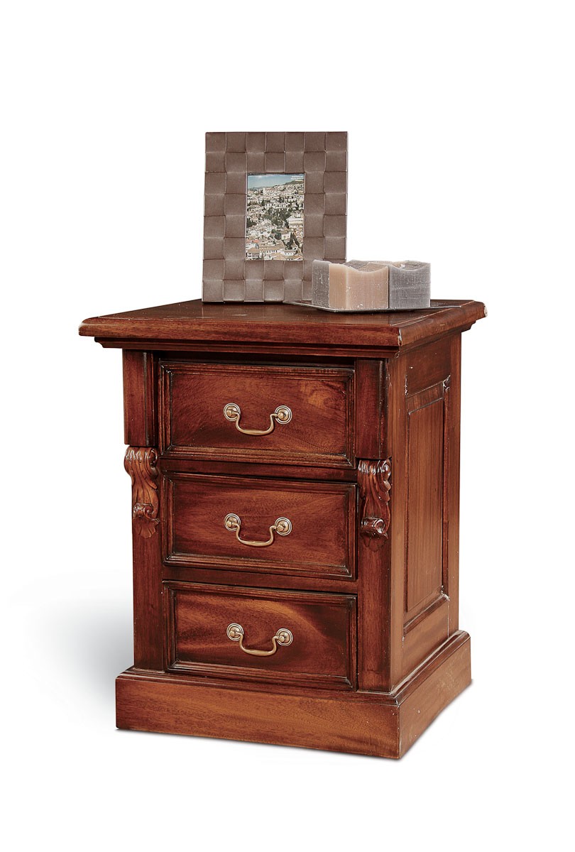 Con la elegante mesilla de noche victoriana fabricadapor Keen Replicas podrá guardar todo lo que necesita tener cerca mientras duerme. Sus tres enormes cajones, junto a su espléndida ornamentación, hacen de este mueble una mesilla de noche ideal.