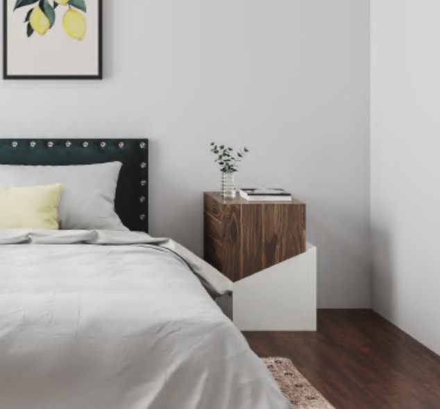 Mesita de noche Rayo con formas asimétricas que le da un toque diferente. Fabricada en roble, nogal o MDF según las necesidades de cada cliente. Piezas originales que aportan a nuestras estancias un estilo minimalista lleno de vida