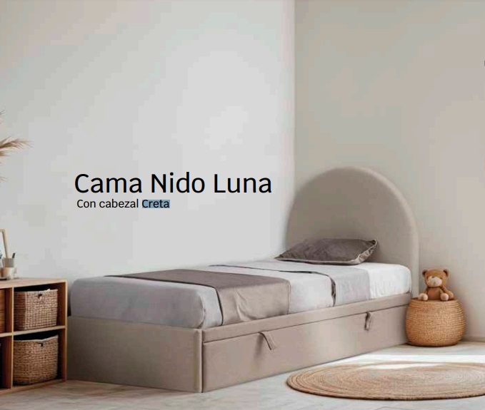 El producto cama nido Luna con cabecero Creta está disponible en gran variedad de tapizados